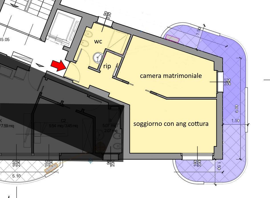 L'immobile è composto da ingresso su soggiorno con zona cottura, ampia camera matrimoniale, ripostiglio, bagno finestrato e grande balcone,posto auto privato in aera protetta.
